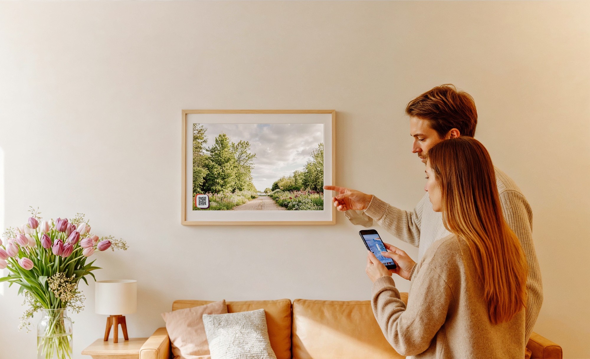 Je koppelt die pagina via een QR-code aan een kaart, poster of ingelijste foto.